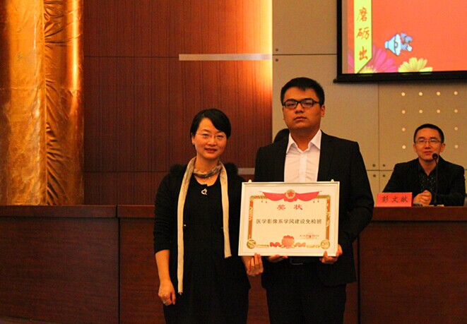 学风建设向来是医学影像系狠抓不懈的一项长期工程,上半年,系里就推出了一项针对2013级学生的学风建设免检班评比活动,此项活动得到了6个班级的积极申请与参与,并且不少班级通过这个活动提高了学习效率,增进了班级的凝聚力。首先,徐主任特此为在此项评比中脱颖而出、被评为免检班的影像1301班颁奖。